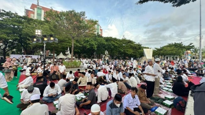 Acara dimulai dengan pembacaan khataman ayat suci Al-Qur’an dan doa bersama, kemudian dilanjutkan dengan buka puasa bersama. Suasana kekhusyukan dan kehangatan terasa menyelimuti seluruh area masjid, mencerminkan semangat berbagi di bulan suci Ramadhan.