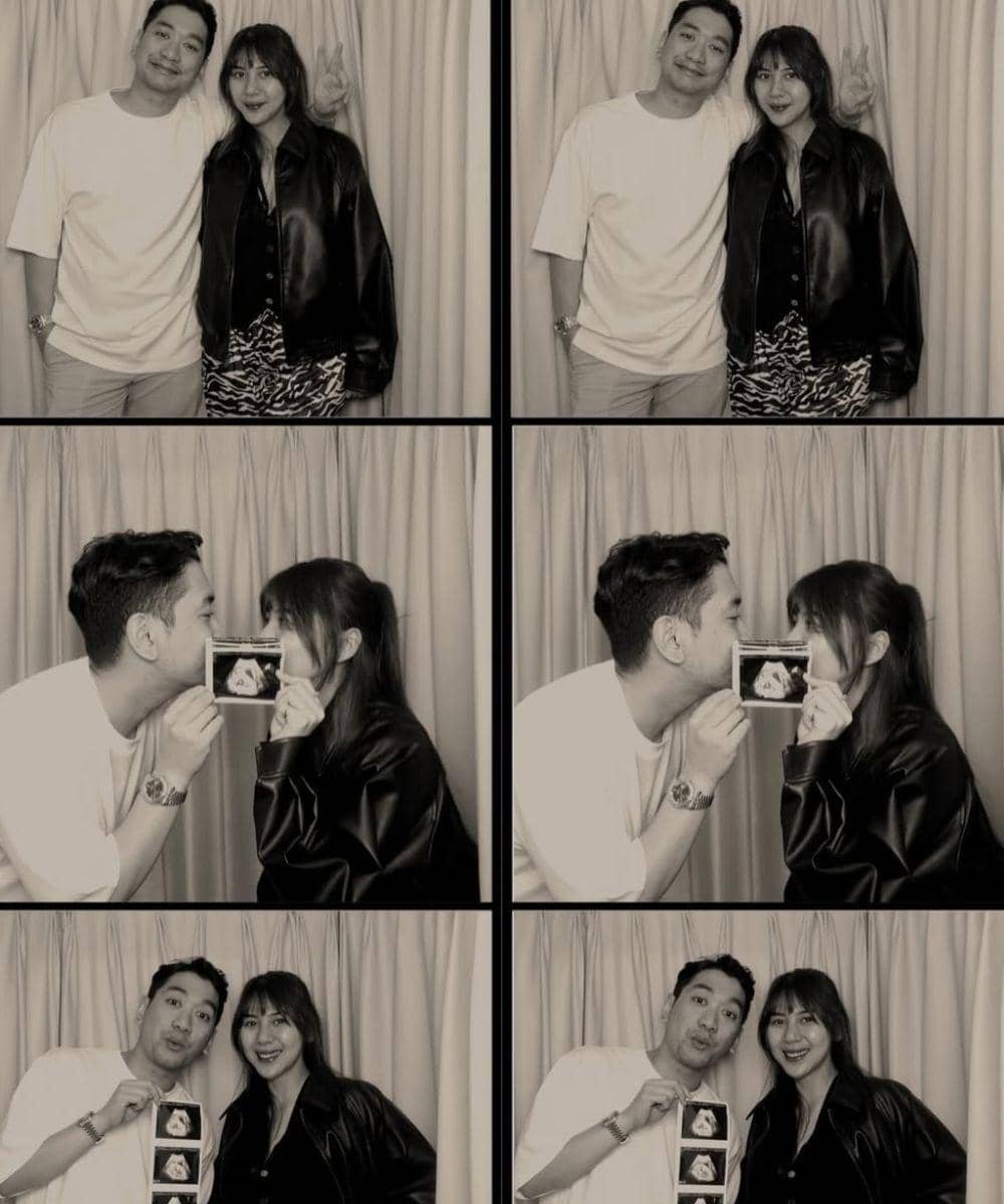 Foto tersebut memperlihatkan dirinya bersama sang suami. Keduanya tampak berpose berdekatan, sementara beberapa potret lainnya juga menampilkan hasil USG calon bayi mereka yang melengkapi unggahan tersebut.