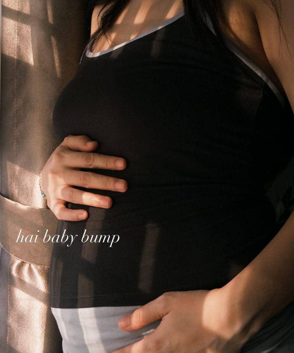 Dinda juga melengkapi foto tersebut dengan tulisan “hai baby bump” di bagian tengah foto. Hal ini semakin mempertegas fokus pada perutnya yang mulai membesar serta menunjukkan momen kehamilan yang sedang ia jalani.